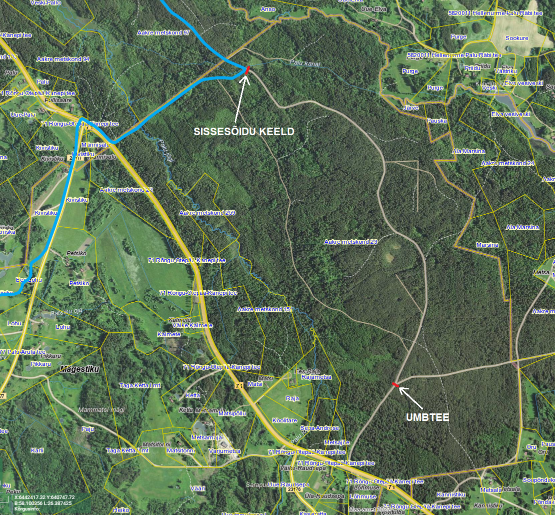 Sissesõidu keeld (koos lisatahvliga: välja arvatud RMK ja Tartu Maratoni loal) Liiklusmärgi koordinaadid: hps://goo.gl/maps/jVZTQCw7hT4MZVqz8 Selle täpse asukoha üritame läbi rääkida maaomanikega, et saaks nende kinnistule märgi paigaldada. Kui maaomanike nõusolekut ei saa, siis paigaldame RMK kinnistule.