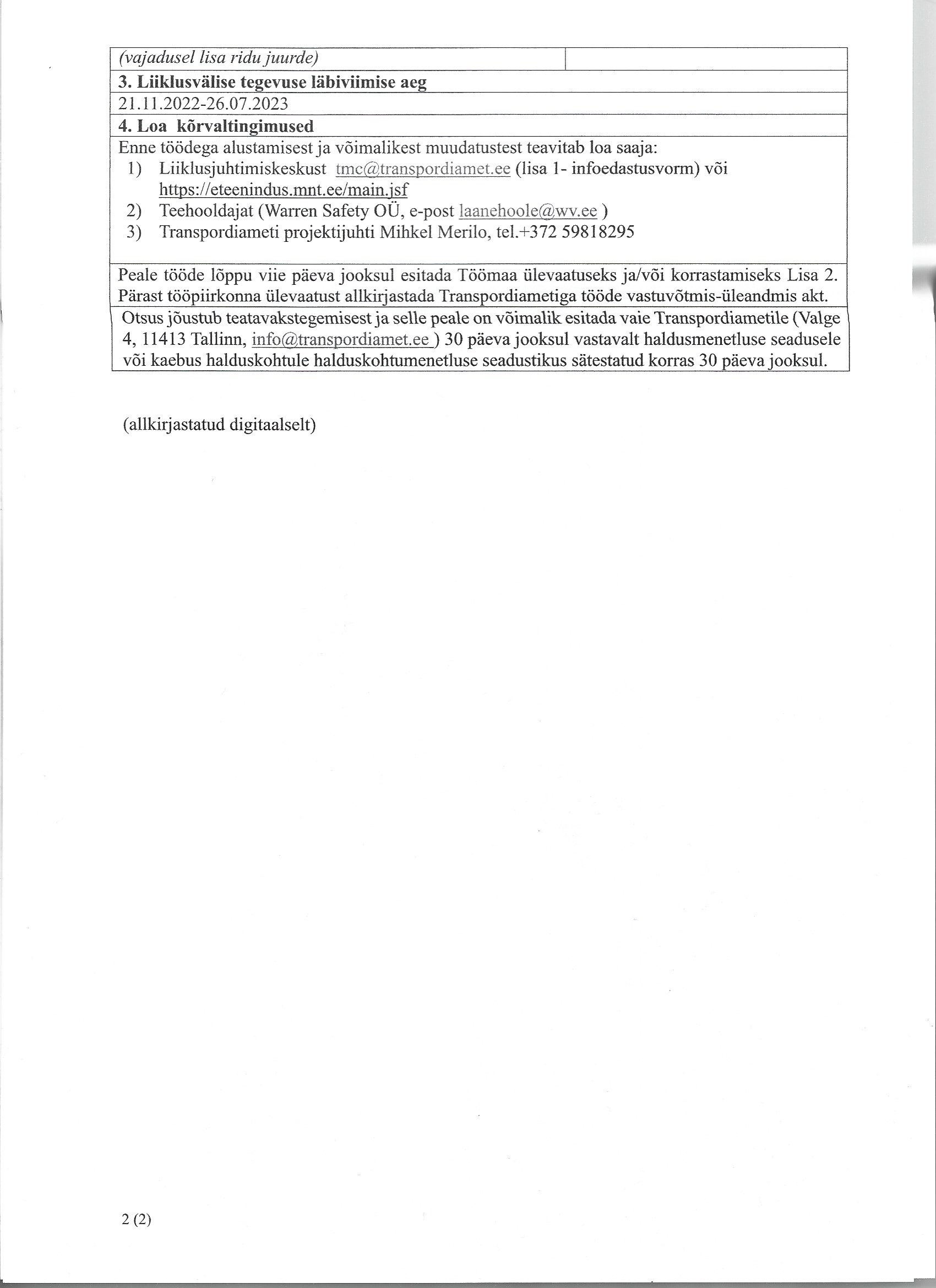 Küsite oma 16.11.2022 RMKle saadetud e-kirjas kooskõlastust sidekaabli demonteerimise