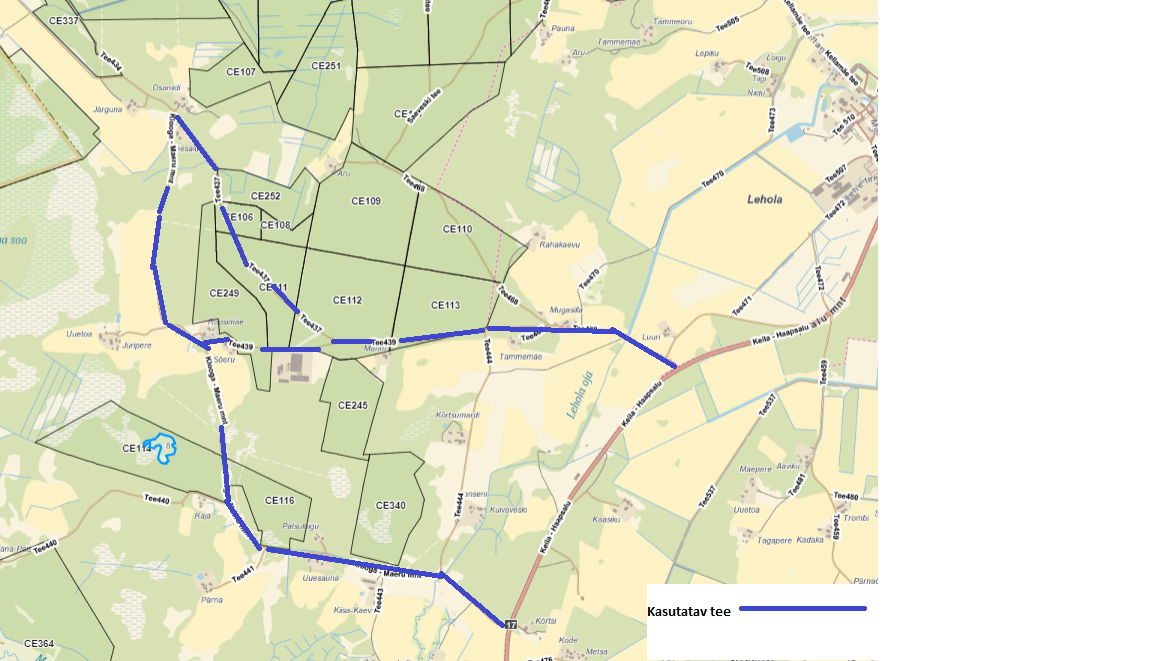 Klooga-Maeru teed (5954100) ja Tee434 (2954340) teed. Metsamaterjali veoks kasutatavad teed on