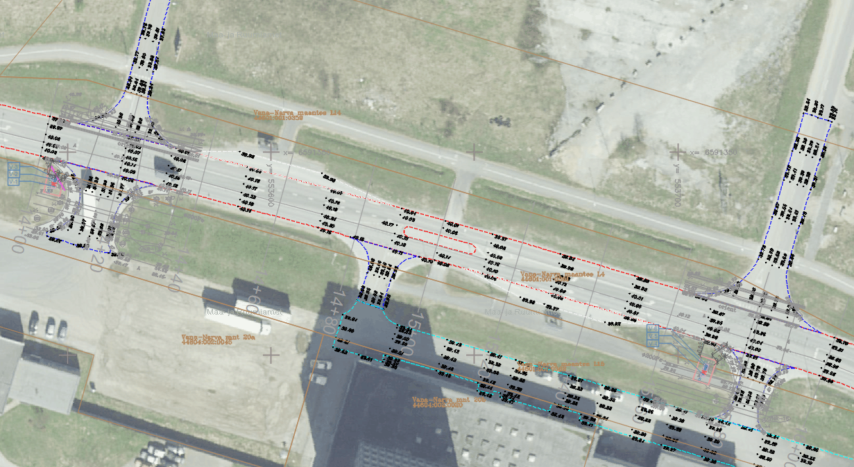 Palun saatke Vana-Narva maantee kõnealuse lõigu rekonstrueerimise projekti teostusjoonis. Või kontakt kellelt seda küsida.