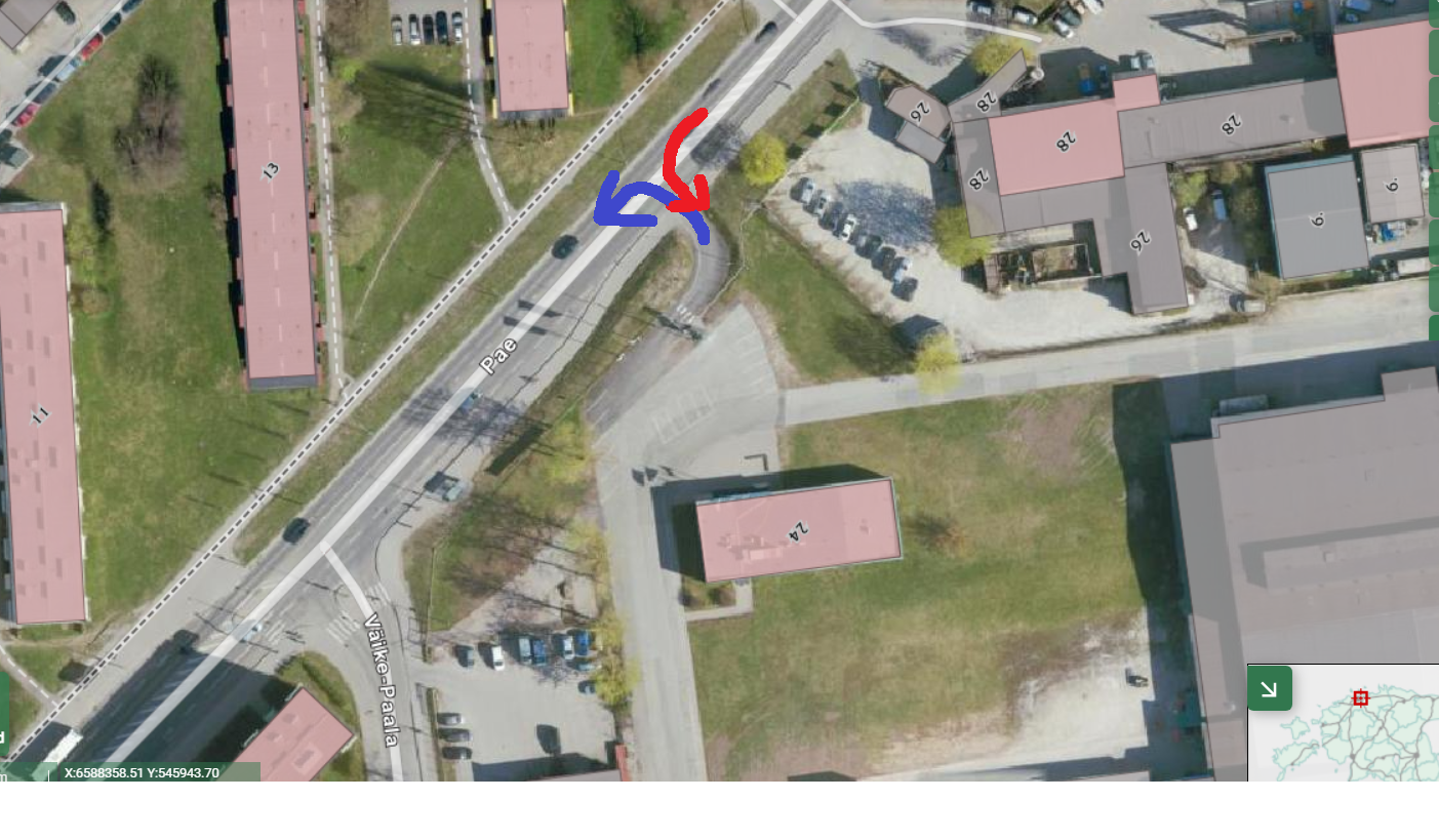 2. Väljasõitudes Päe tänavalt Pae 24 kinnistule lubada transpordile pöörata vasakule (Punane nool)