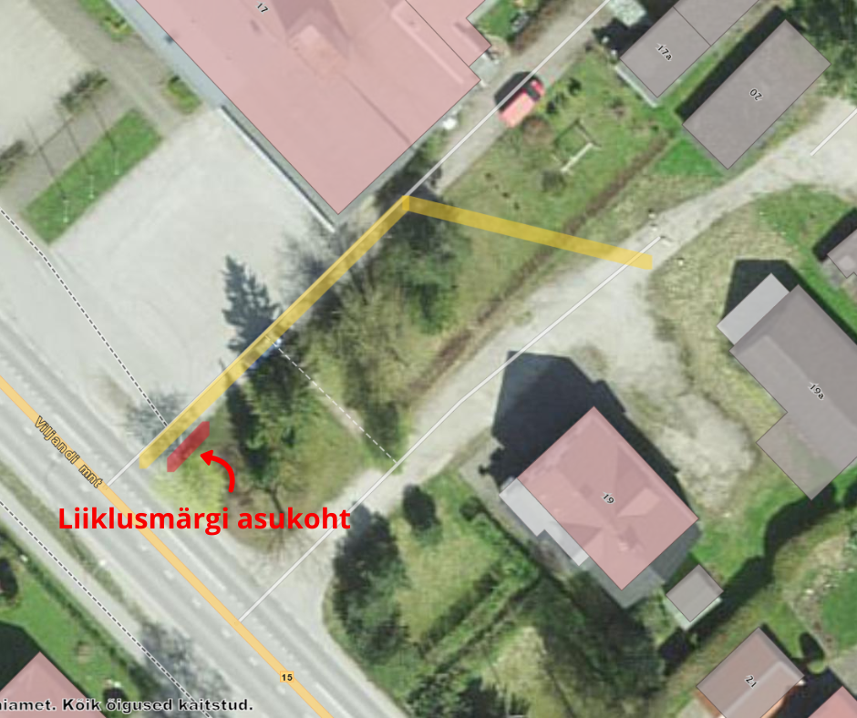 Eesmärk suunata Nukitsa tööriistakeskuse juurde Viljandi mnt 19A, mis asub teise kinnistu taga ja pääseb ainult ühte teedpidi, mis on rajatud kinnistule Viljandi mnt 17 ja Linnapea kõnnitee L1(notariaalne servituut sõlmitud 06.06.2024). Liiklusmärgil tekst: NUKITSA TÖÖRIISTAKESKUS + nool Suunaviidad kahele poole kirjetega