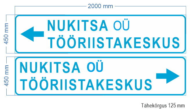 1.2. Märgi suurtähe kõrgus on 125 mm, tekst „ NUKITSA OÜ TÖÖRIISTSKESKUS“ +