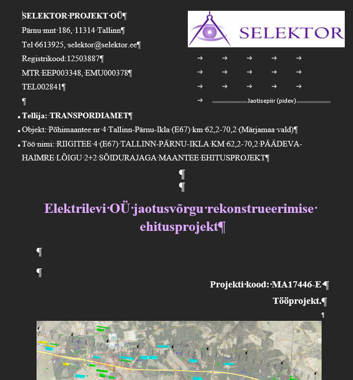 Töökorraldus Projekt on teostatud lähtudes Elektrilevi OÜ projekteerimisülesandest.