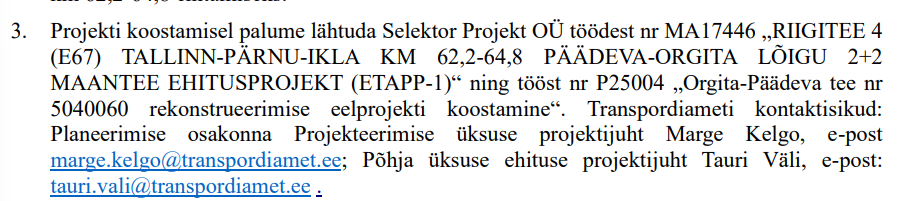 Ühtlasi on Laur 18.12.2025 kirjaga nr 7.1-2/25/17727-6 kooskõlastanud „Ehitusloa eelnõu nr 2511271/24759 (menetlus nr 515956) kooskõlastamine märkustega“ sademeveetorustiku (EHR kood 221495126), tänavavalgustuse (EHR kood 221495130), 0,4 kV elektrikaabelliini (EHR kood 221495143), keskpinge elektrikaabelliini (EHR kood 221495147), tee (EHR kood 221495151), kergliiklustee (EHR kood 221495153) ehitamiseks. Ehitusloa aluseks on „Orgita-Päädeva tee nr 5040060 rekonstrueerimise eelprojekt“ (peaprojekteerija Selektor Projekt OÜ, töö nr P25004). See on viimane versioon, palun võta see alla.