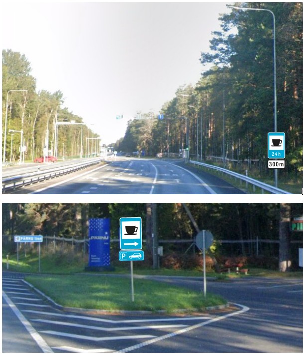 Transpordiamet annab loa teeninduskohamärkide 726 „Kohvik 24h“ koos tahvliga 811 „Kaugus