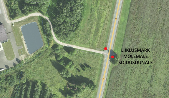 Kahepoolne liiklusmärk, mis oleks näha nii Imavere kui Viljandi poolt sõites. Eesmärk on tähistada Fibenol Imavere OÜ territooriumile viivat teeotsa.