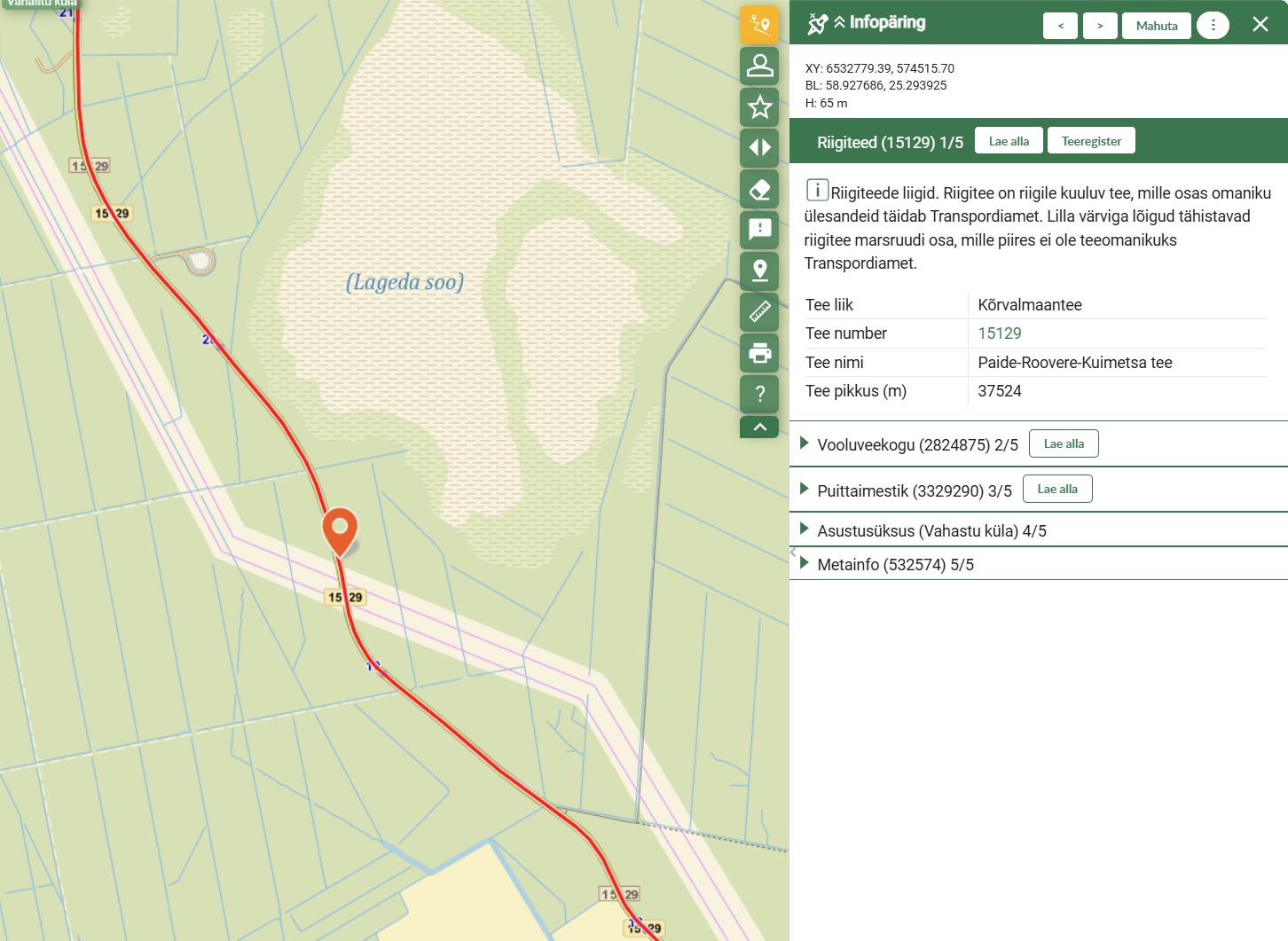 Riigitee (nr, nimi, alg ja lõpp km); vasak/parem tee pool