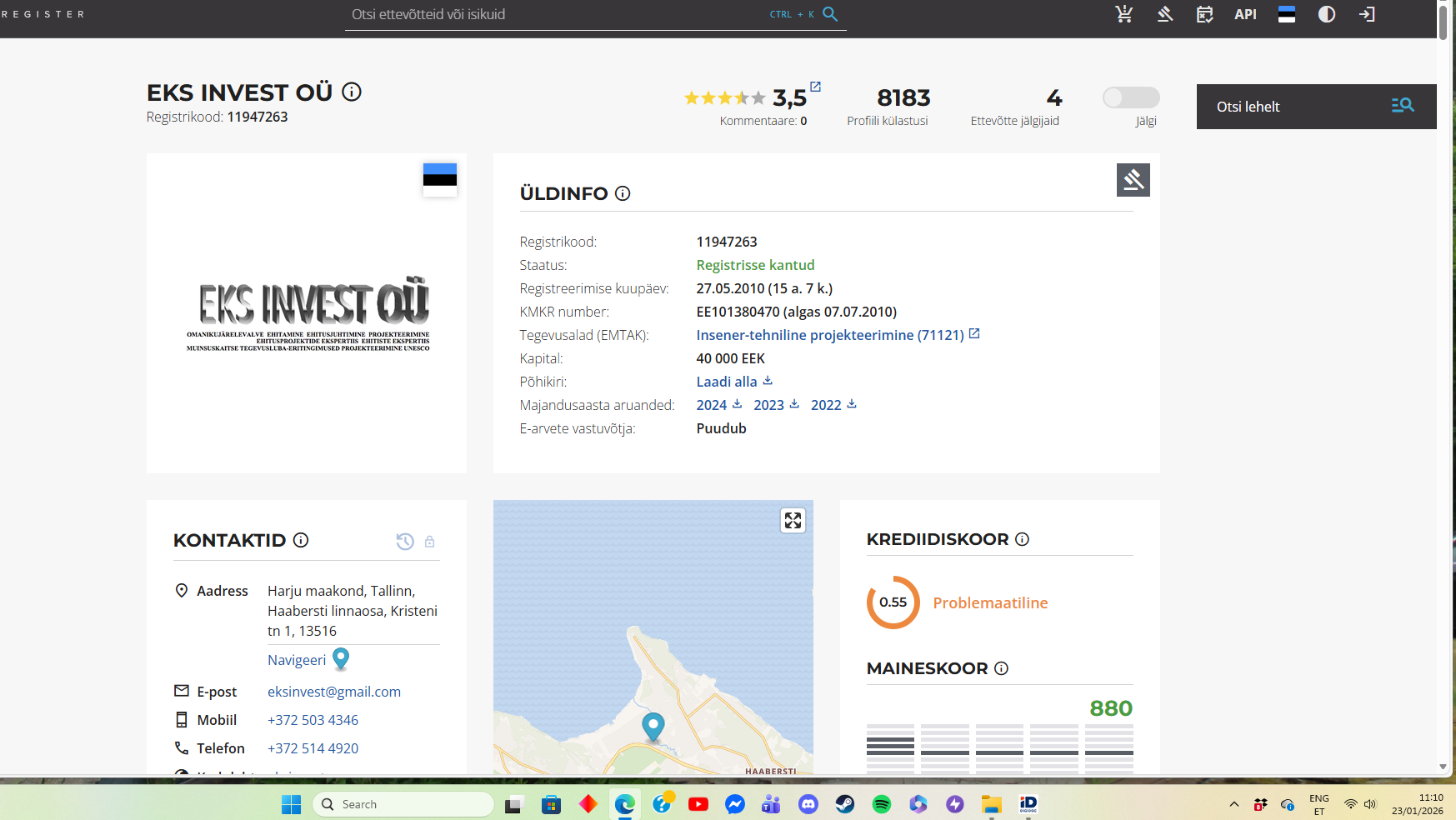 Meie ettevõtte tegevust väga segab ja häirib inforegistri vale info kajastamine avalikus kohas.