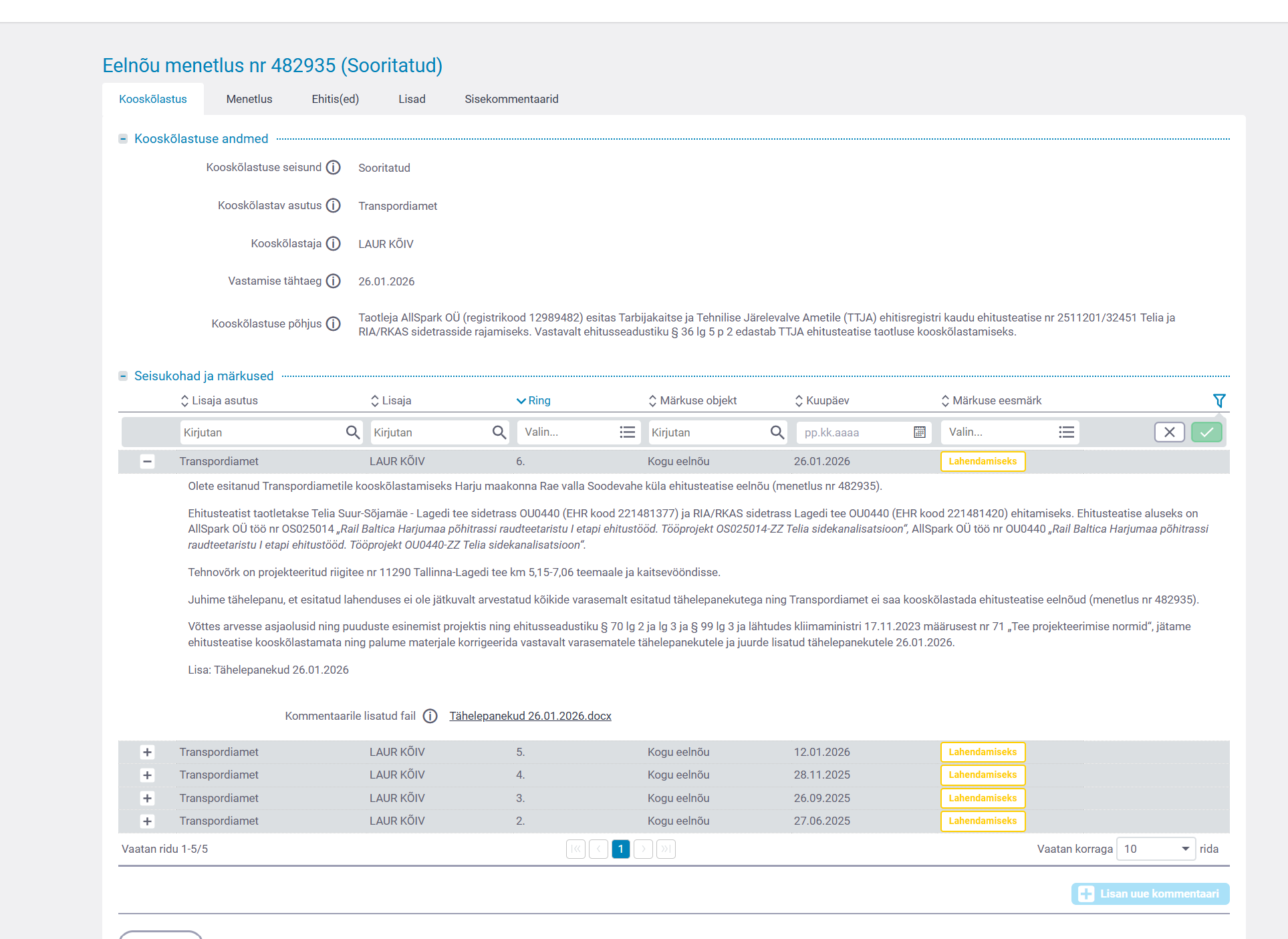 Juhime tähelepanu, et uute materjalide esitamisel võib märkuseid ning asjaolusid lisanduda.