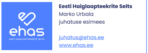 Selles e-kirjas sisalduv teave (kaasa arvatud manused) on mõeldud EHASi juhatusele kasutamiseks ning seda võivad kasutada vaid e-kirja adressaadid. E-kirjas sisalduvat teavet ei tohi ilma saatja selgelt väljendatud loata edasi saata ega mistahes viisil kõrvalistele