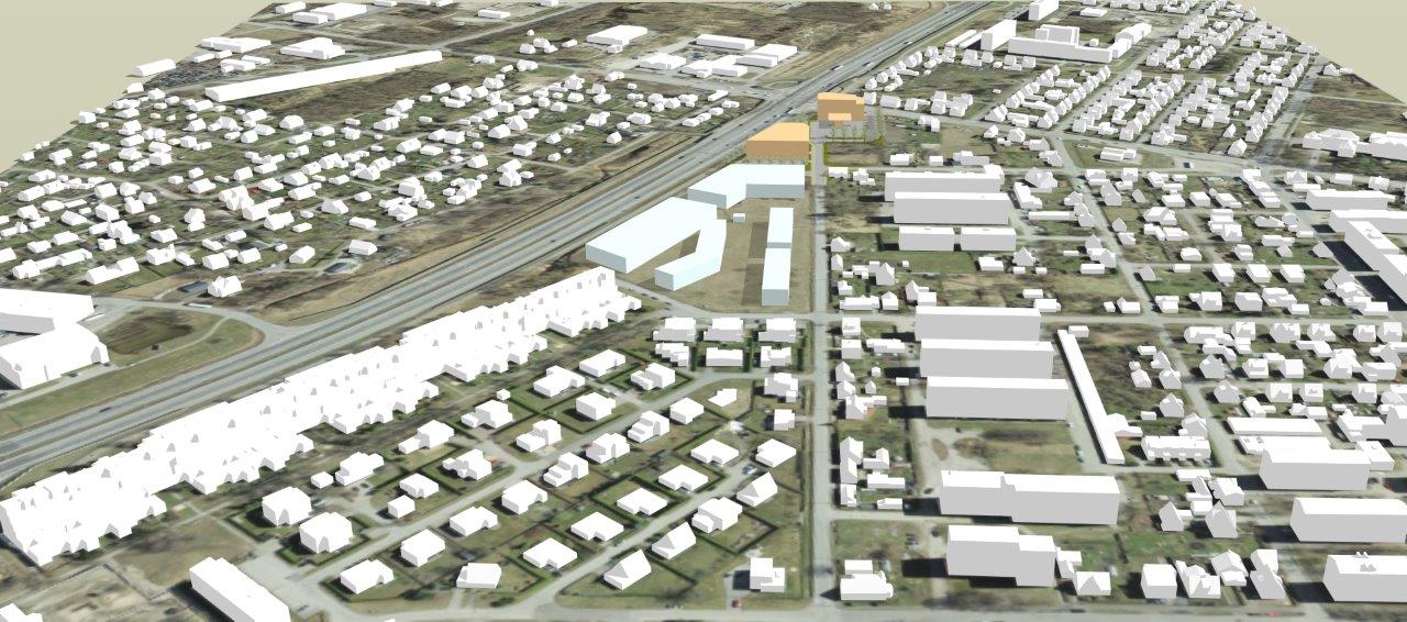 hoonestusõigust kuvatud uuel Raba tn 18 planeeringuala joonistel ja 3D mahueskiisil.