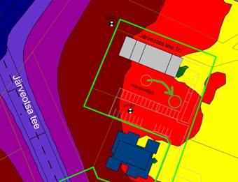 Koosolekul lepiti kokku, et üks võimalik lahendus oleks maja asukoha muutmine selliselt, et maja blokeeriks liiklusmüra ja sisehoovis oleks seetõttu väiksem müratase. Skeem on allpool, kus on rohelisega näidatud hoone uus võimalik asukoht.