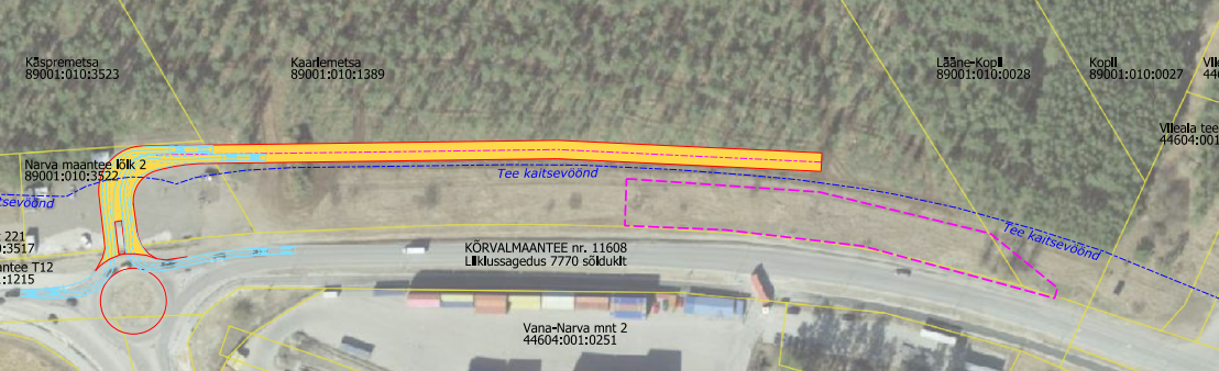 - ristmike vahe on tegelikult üle 400m. Seejuures on teisel pool teed Vana-Narva mnt 2 kinnistu mahasõit koos vasakpöörderajaga.