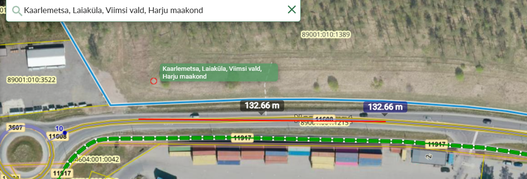 Arvestades eeltoodut, saan olemasolevate ristmike vahekauguseks ca130m, mis näeb Maa-ja Ruumiameti kaardile välja nii :