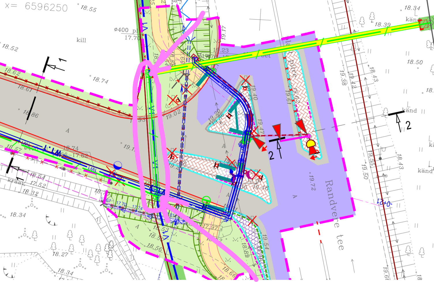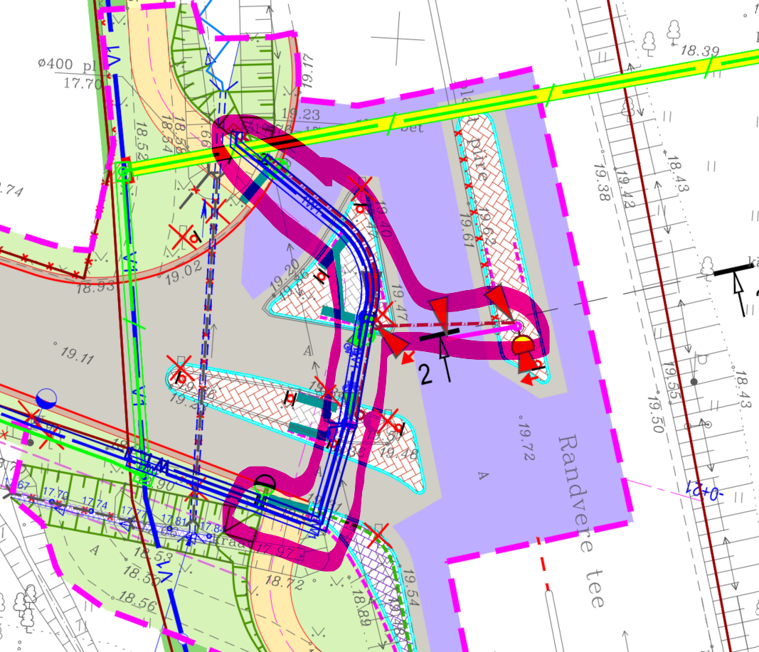 Soovime saada nende trasside osas tagasisidet st kas nii põhimõtteliselt sobib. Mis puudutab sidet ja foore ning ristmikku, siis seda osa palume hetkel mitte vaadata, selle lahenduse lõpetame peale geoloogia aruande saamist ning siis saadame ka kogu projekti uuesti kooskõlastamiseks st ristmiku ehitusloa saamiseks.