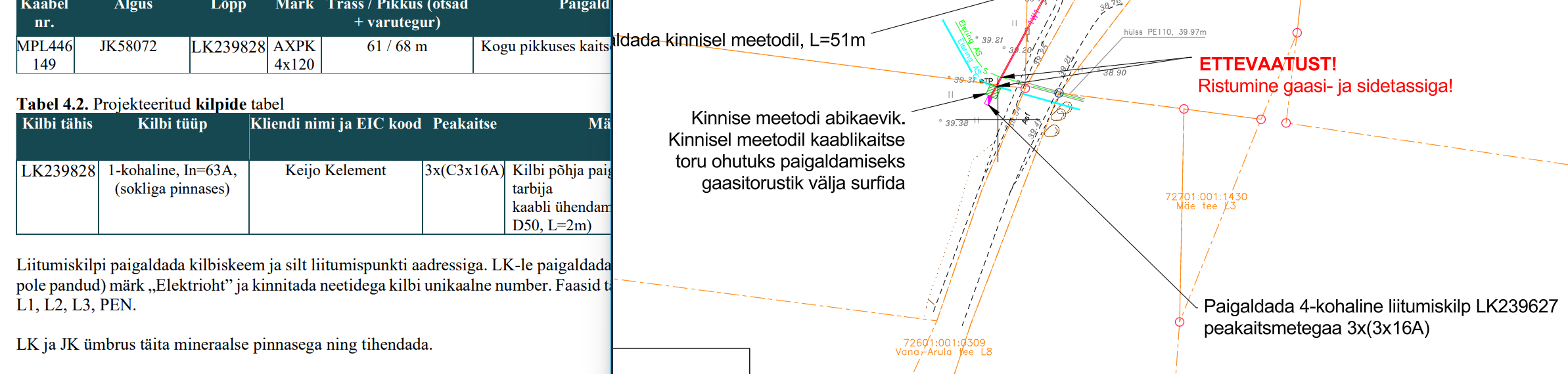 Ligilähedane olemasoleva madalpingeliini asukoht
