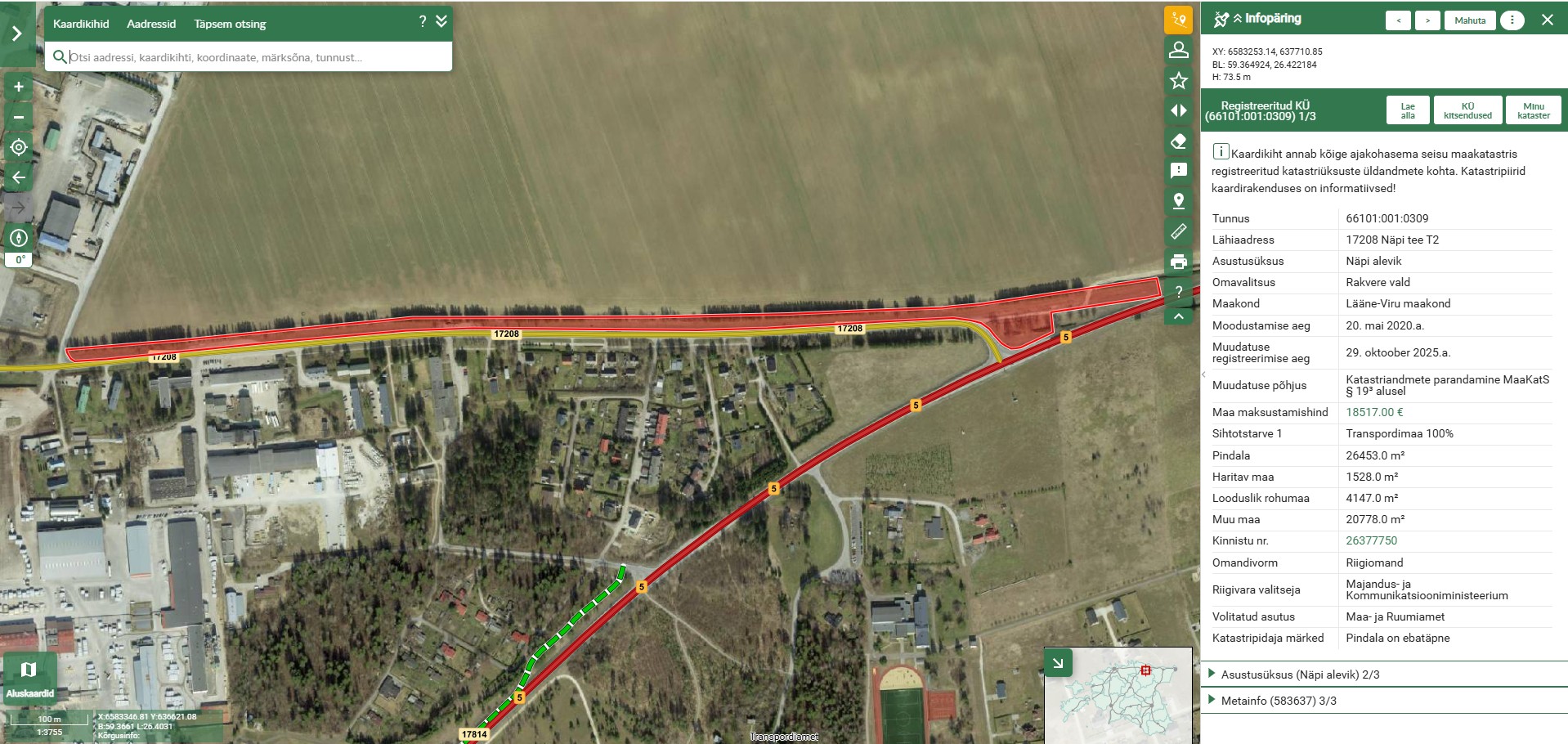 Ruumiametile (volitatud asutus) kuuluvat katastriüksust 66101:001:0309 (17208 Näpi tee T2).