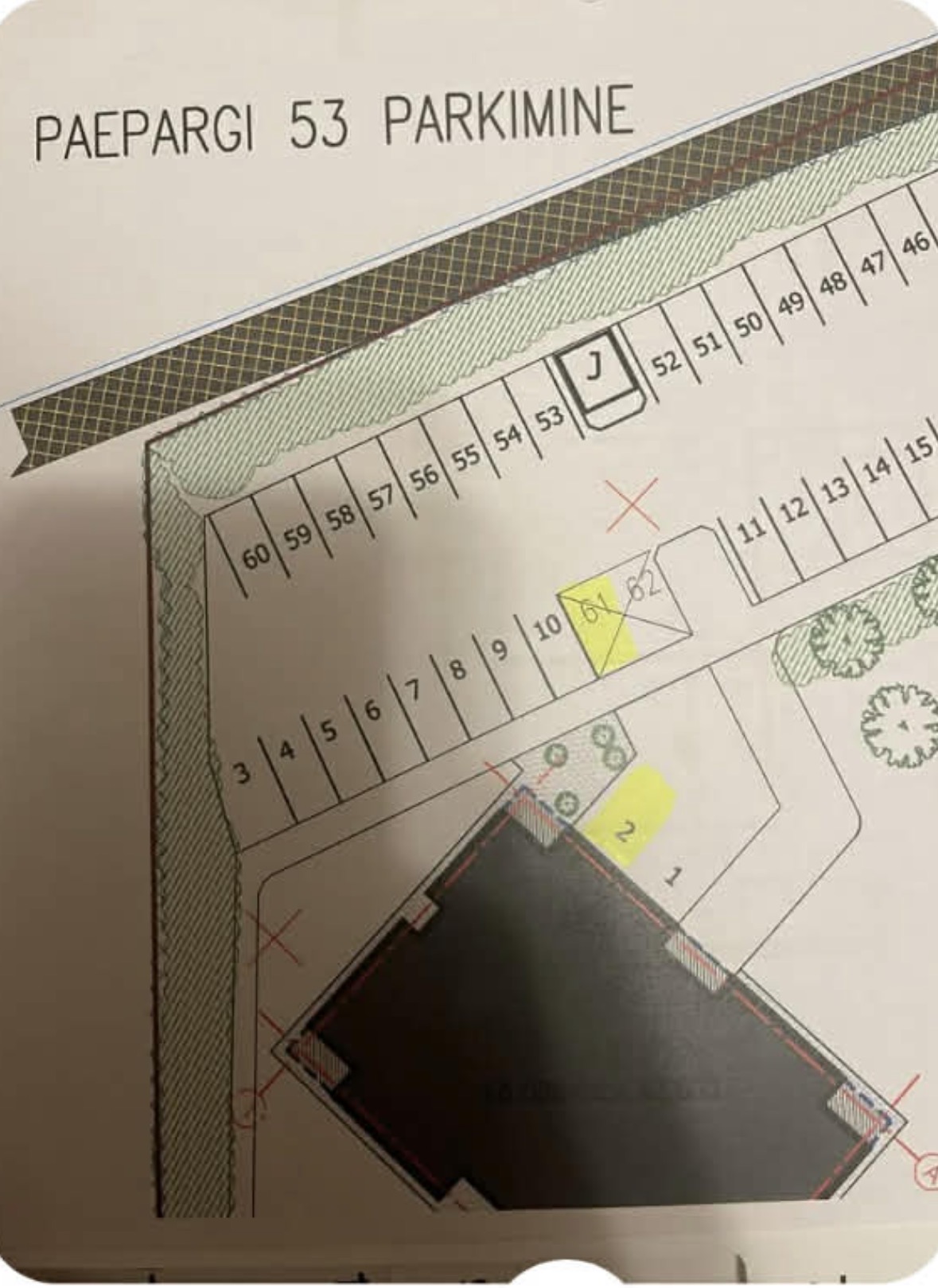 Kui parkimiskohad nr 61 ja 62 ei vasta keh"vale projek"le või nende kasutamine takistab päästetehnikat, tuleb olukord viia vastavusse ehitusprojek"ga või algatada projek"muudatus koos vajalike kooskõlastustega.