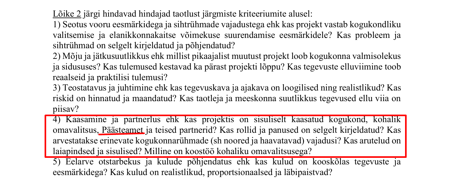 Kogukonnafondi taotluste hindamiskriteeriumite ja juhendmaterjalide kohaselt hinnatakse: