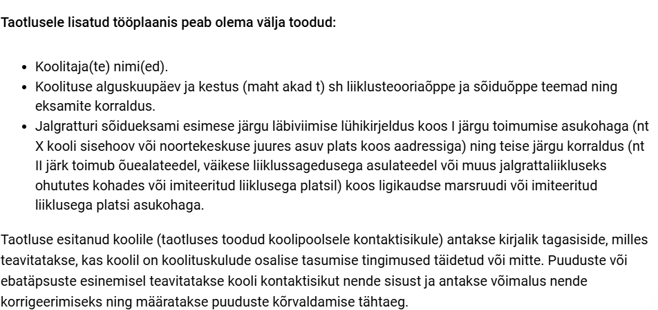 Jalgratturi sõidueksami esimese ja teise järgu läbiviimine toimub Haljala Kooli territooriumil mängude väljakul aadressiga Rakvere mnt 10, Haljala.