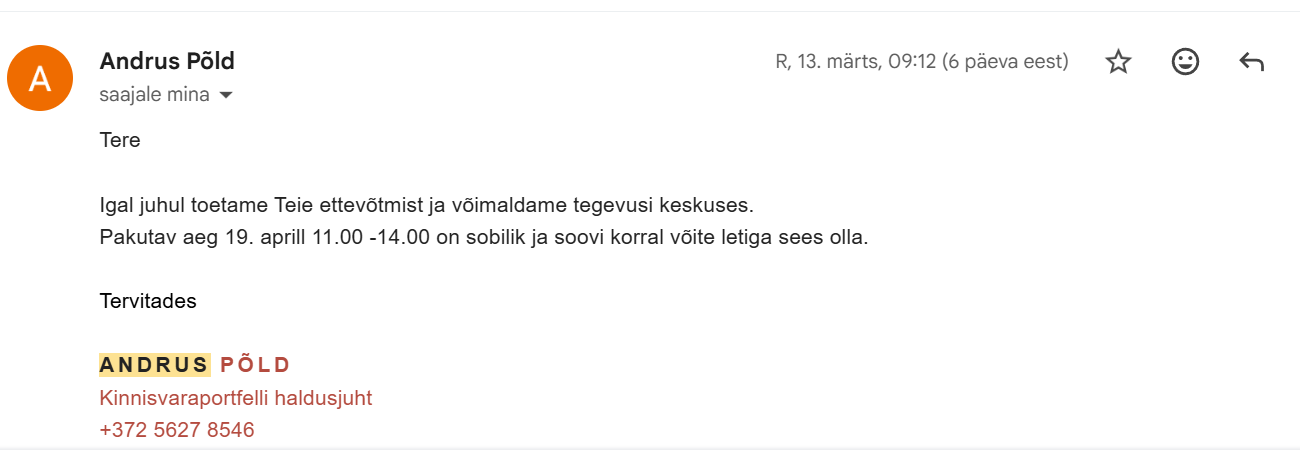 | Liik | Sissetulev kiri |