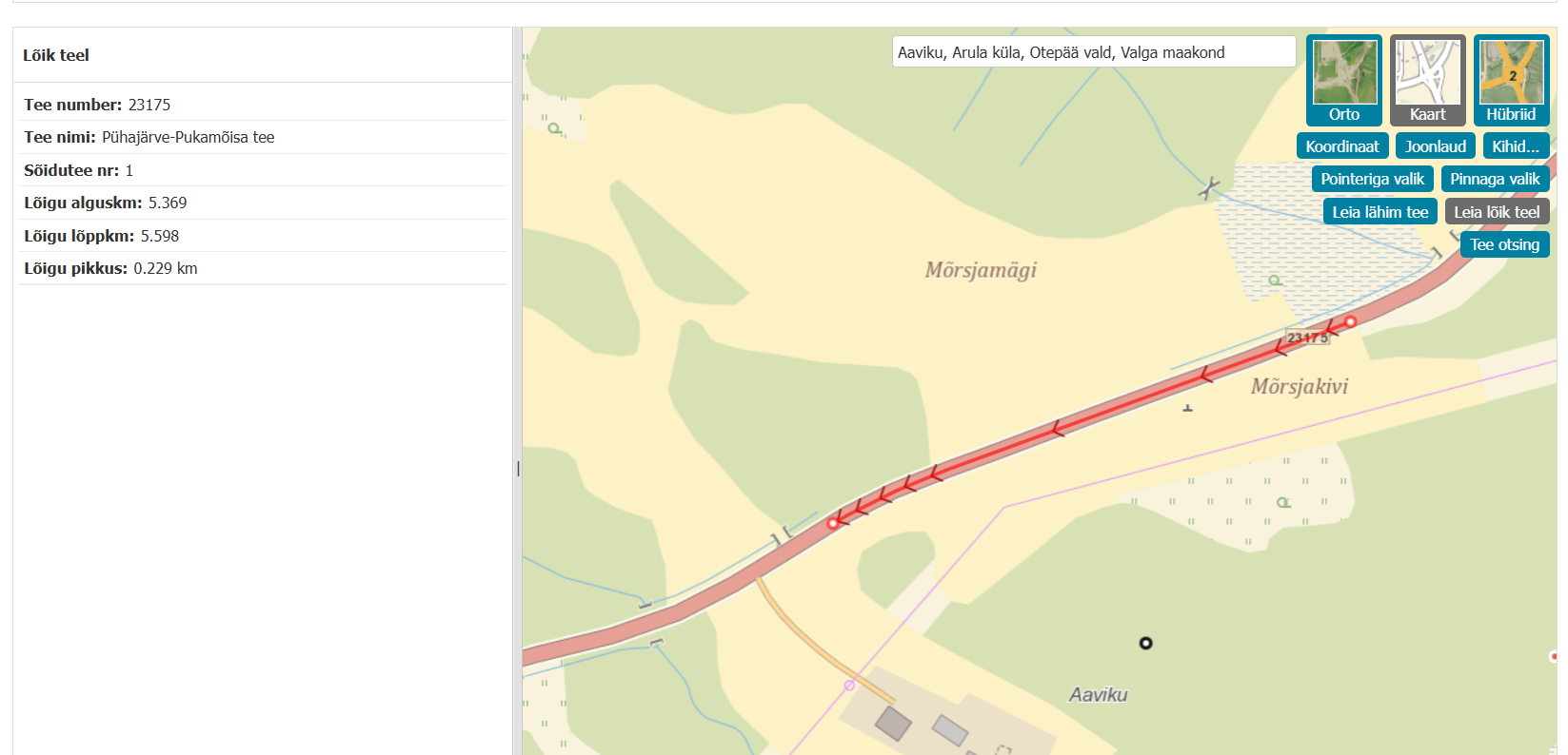 Tee number23175 Tee nimiPühajärve-Pukamõisa tee