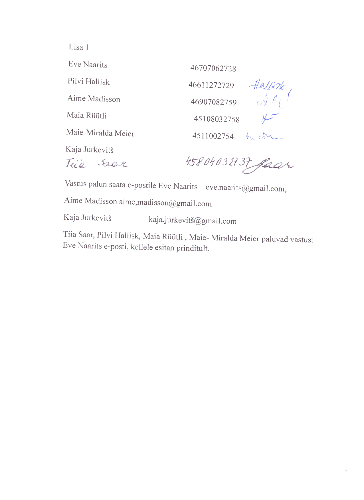 Pilvi Hallisk /allkiri dokumendil/ Lisa 1