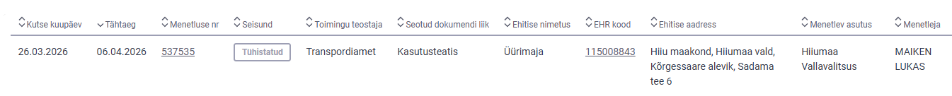 | Dokumendiregister | Transpordiamet |