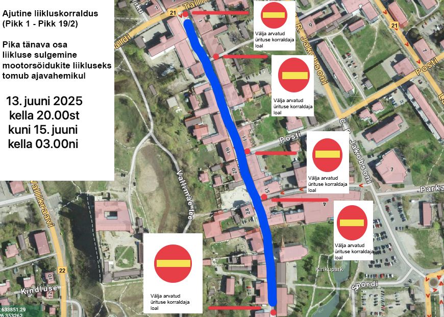 tänavast kuni Pikk tn 19/2 hooneni 13. juunil 2025. a kella 6.00-st kuni 14. juunil 2026. a kella 03.00-