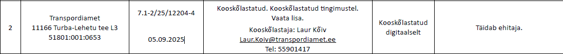 Luba 24.10.2025 3 7.1-3/25/17671-2 Luba liiklusväliseks tegevuseks/teabevahendi paigaldamine transpordiamet