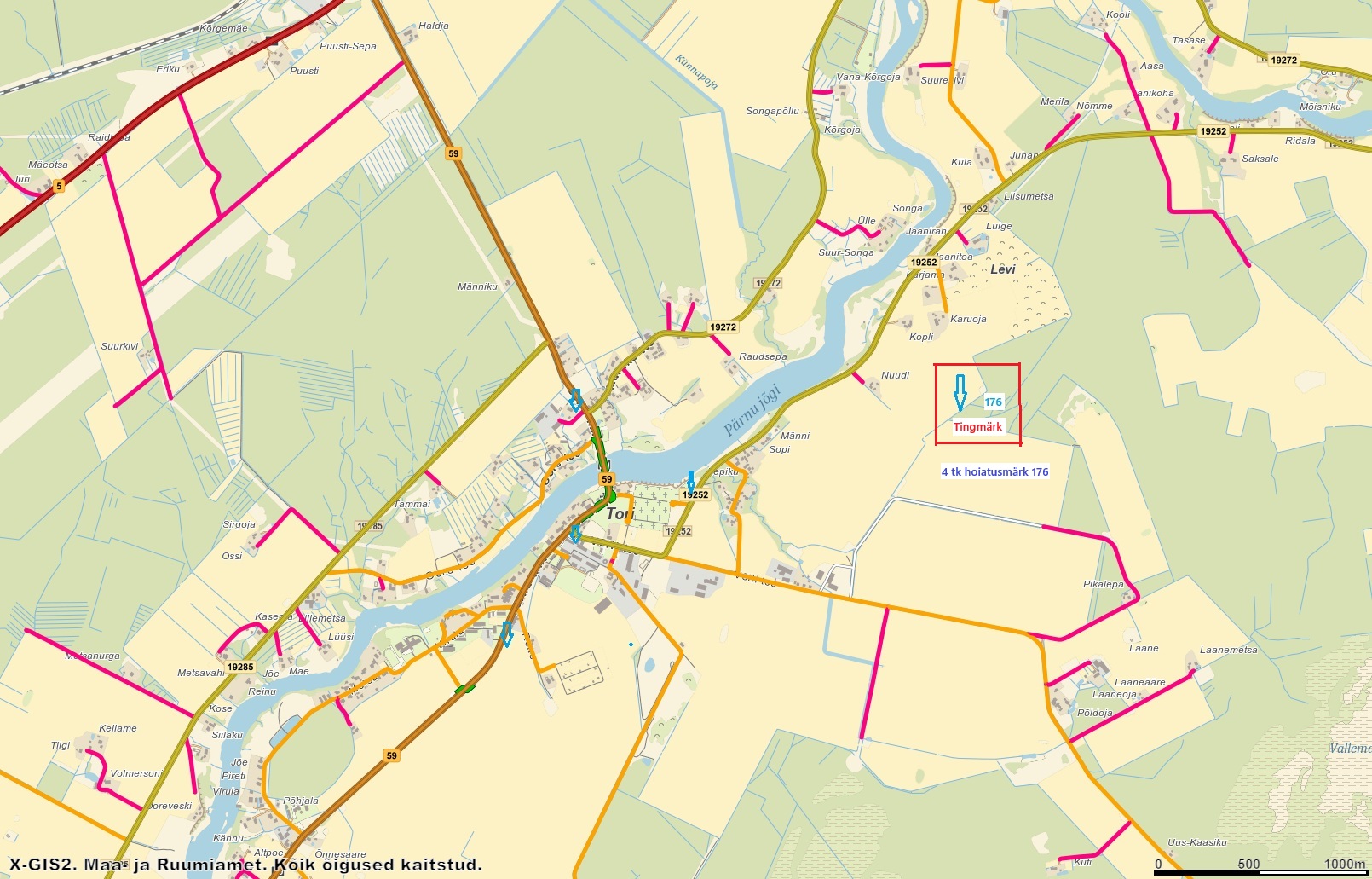 Tere, seoses Tori alevikus intensiivistunud ratsahobuste liiklemisega teedel, taotleme hoiatusmärkide 176 paigaldamist manuses näidatud kohtadesse (sinine nool 4tk).