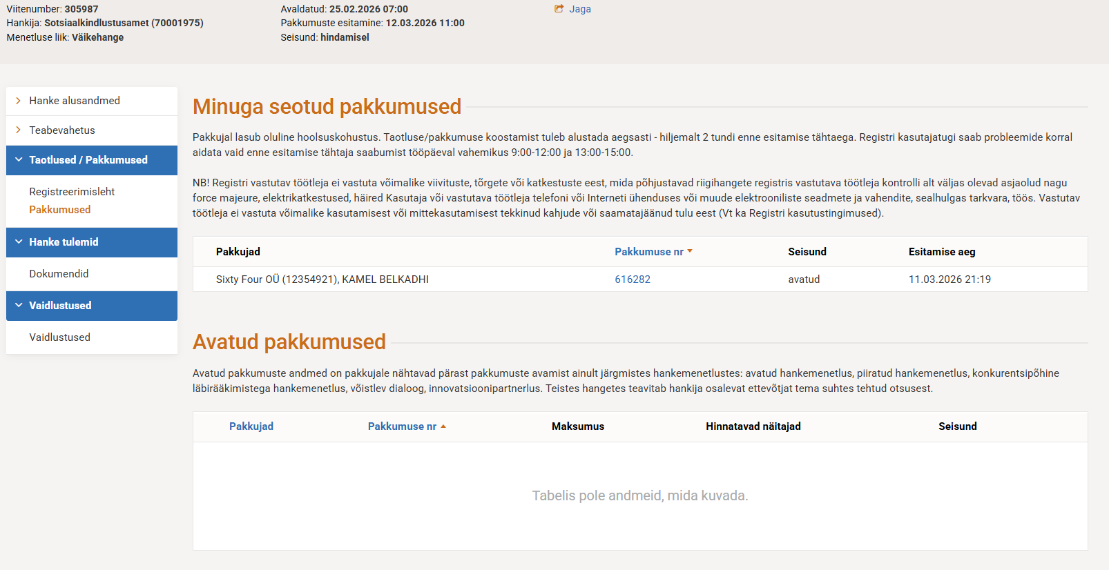 Subject: Avatud Pakkumustest ei nähtu, et keegi teine oleks hankes osalenud