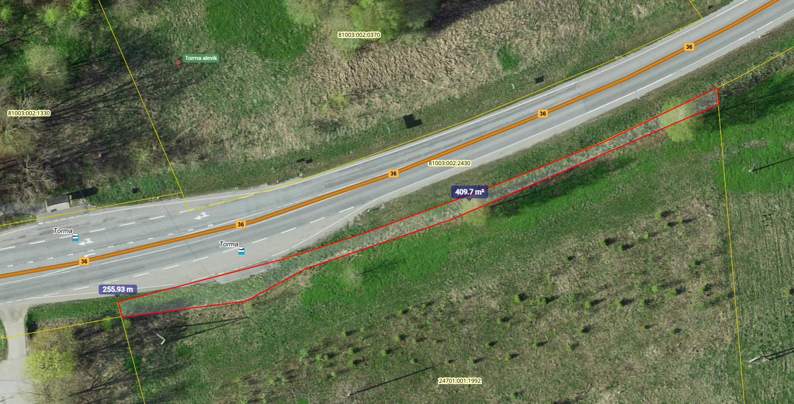 (katastritunnus 81003:002:2430). Transpordiameti huvis on ala, mis on märgitud kirjale