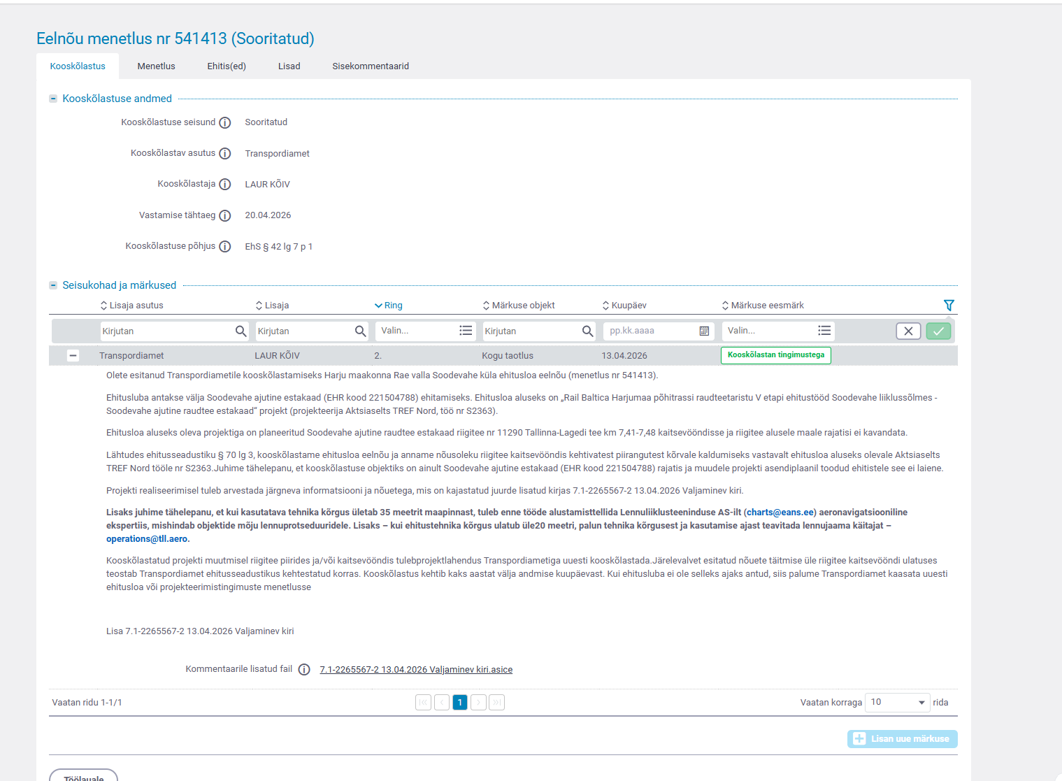 Meie 13.04.2026 nr 7.1-2/26/5567-2
