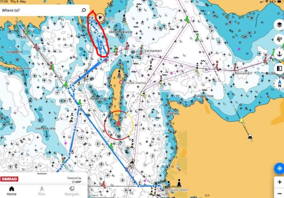 Planeerime kohaliku kogukonna projekti raames paigaldada sadama sissesõiduteele merel 6 navigatsioonimärgist (toodrit), et tähistada ohutu liikumiskoridor madalike vahelt sadamasse. Tegemist on kohaga, kus ametlikult laevateelt (Haapsalu–Sviby suund) on võimalik sadamasse sisse pöörata, kuid sissesõit on kitsas ja madalike tõttu keeruline. Praktikas on seal korduvalt esinenud madalikule sõitmisi.