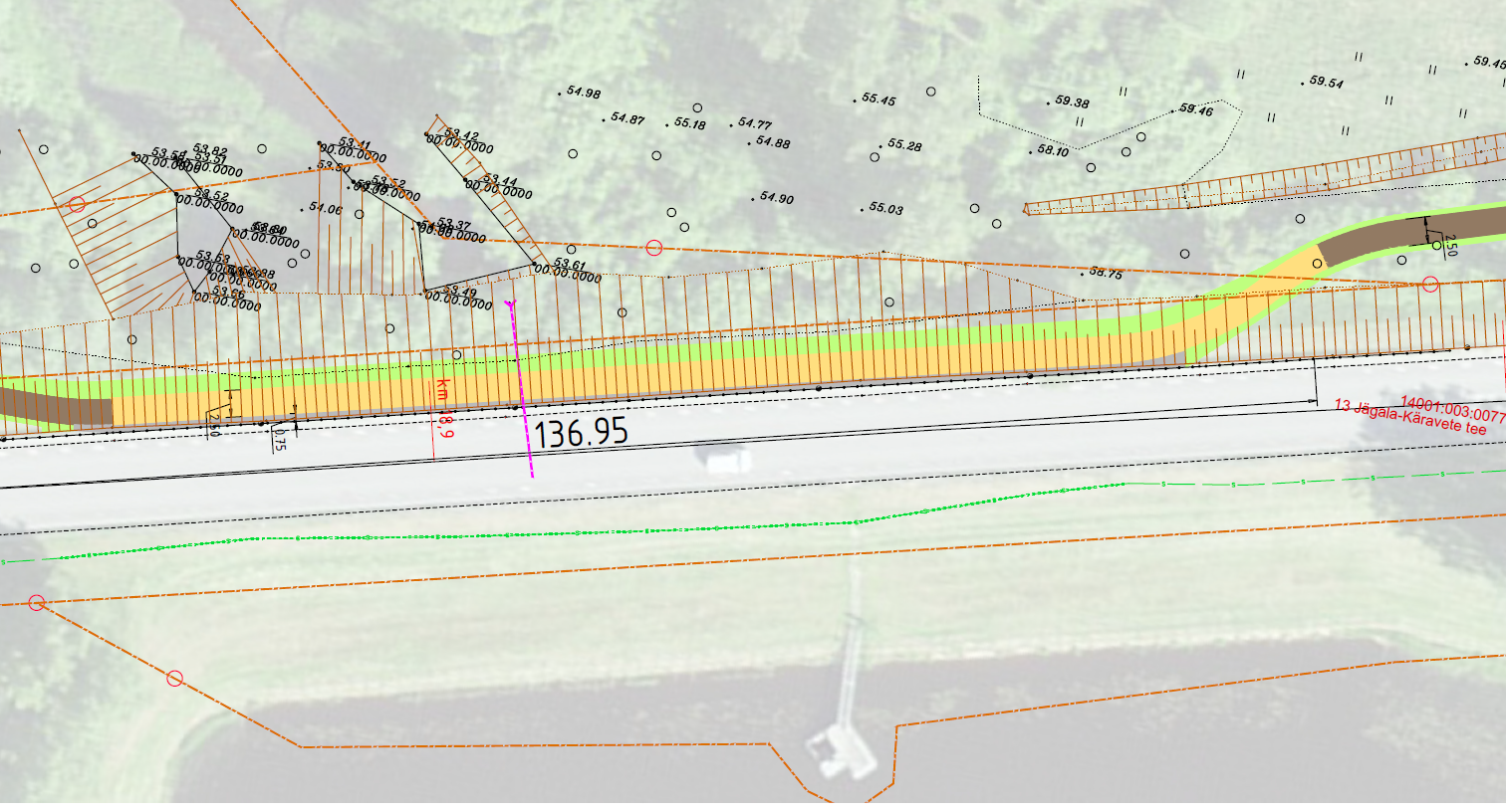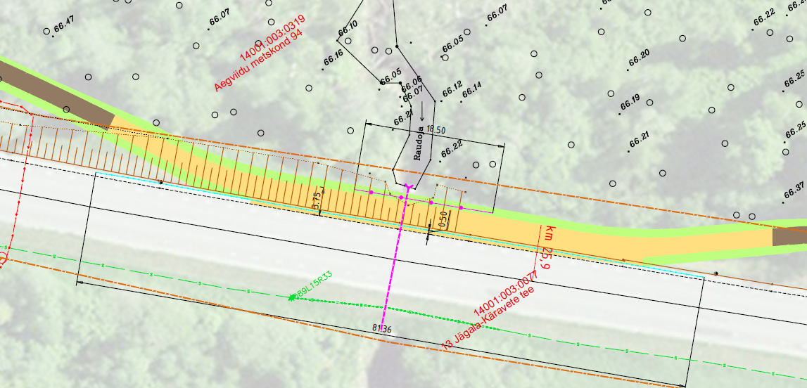 - 13 km 18,84-18,98 olemasoleva sõidukipiirdesüsteem.