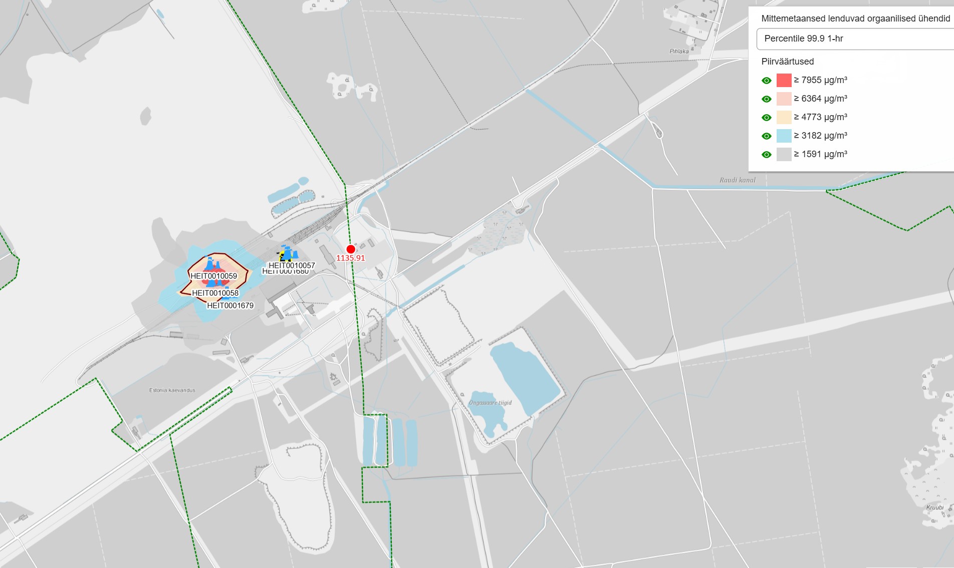 2) Lähimad hooned; Estonia kaevanduse tööstuskompleksi hooned: Olmehoone, kontor, rikastusvabrik, purustuskompleks, katlamaja ja jmt. on 150 – 500 m kaugusel. Lähimad eluhooned objektist on ~1700 m kaugusel.