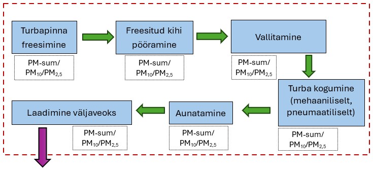 Üldiseks turbatootmise eelduseks on, et on püsinud sobivad ilmas@ku@ngimused – sademeteta kuiv ilm, mis on võimaldanud turba niiskusesisalduse viia tasemele, kus selle töötlemine või kogumine on tehnoloogiliselt võimalik. Tootmisetappe on võimalik läbi viia sõltuvalt turba niiskussisaldusest. Tootmine on tsükliline – tootmisetapp viiakse läbi võimalikult op@maalselt iga tootmistehnoloogia- või viisi puhul. Oluline välisõhu saasteainete heide välisõhku toimub ainult tootmisetapi ajal. Seetõ\u ei ole heide turba tootmisest püsiv, vaid perioodiline ja ajas ning ruumis muutuv. Turba tootmisel eraldub heide kindla suurusega tootmisväljakutelt, mistõ\u on tegemist pindallikaga.