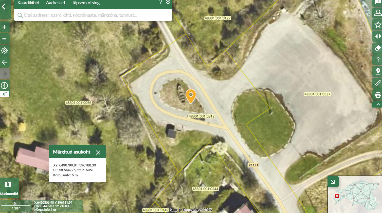 Asukoht on tee nr 21101 lõpus (umbtee, silmuse ohutussaarel).Lisatud ka fotod.