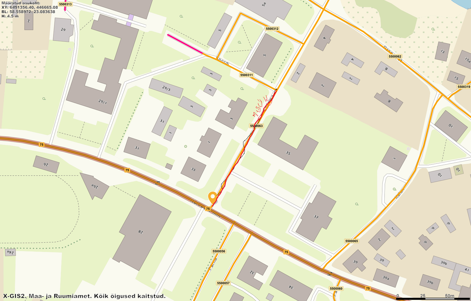 vallas Orissaare alevikus Sadama tänaval Kuivastu mnt ristmikust kuni Spordi tänava ristmikuni